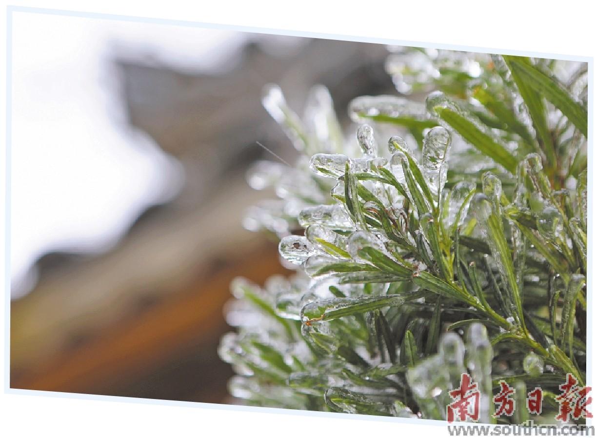 受寒潮影响,清远市连南县南岗村千年瑶寨出现冰挂景观。
