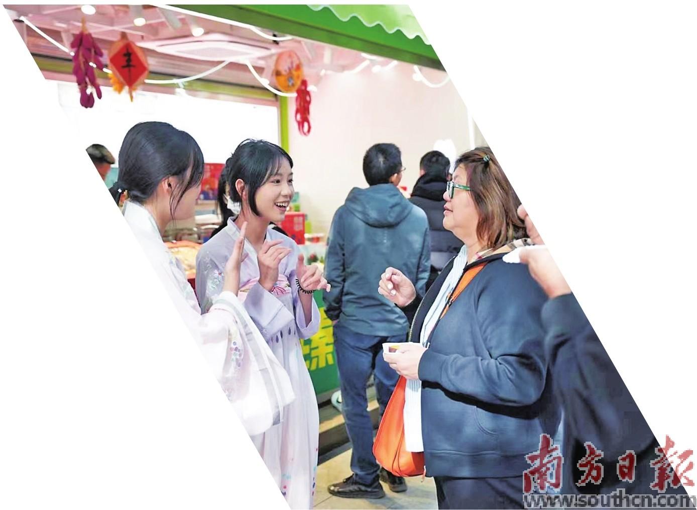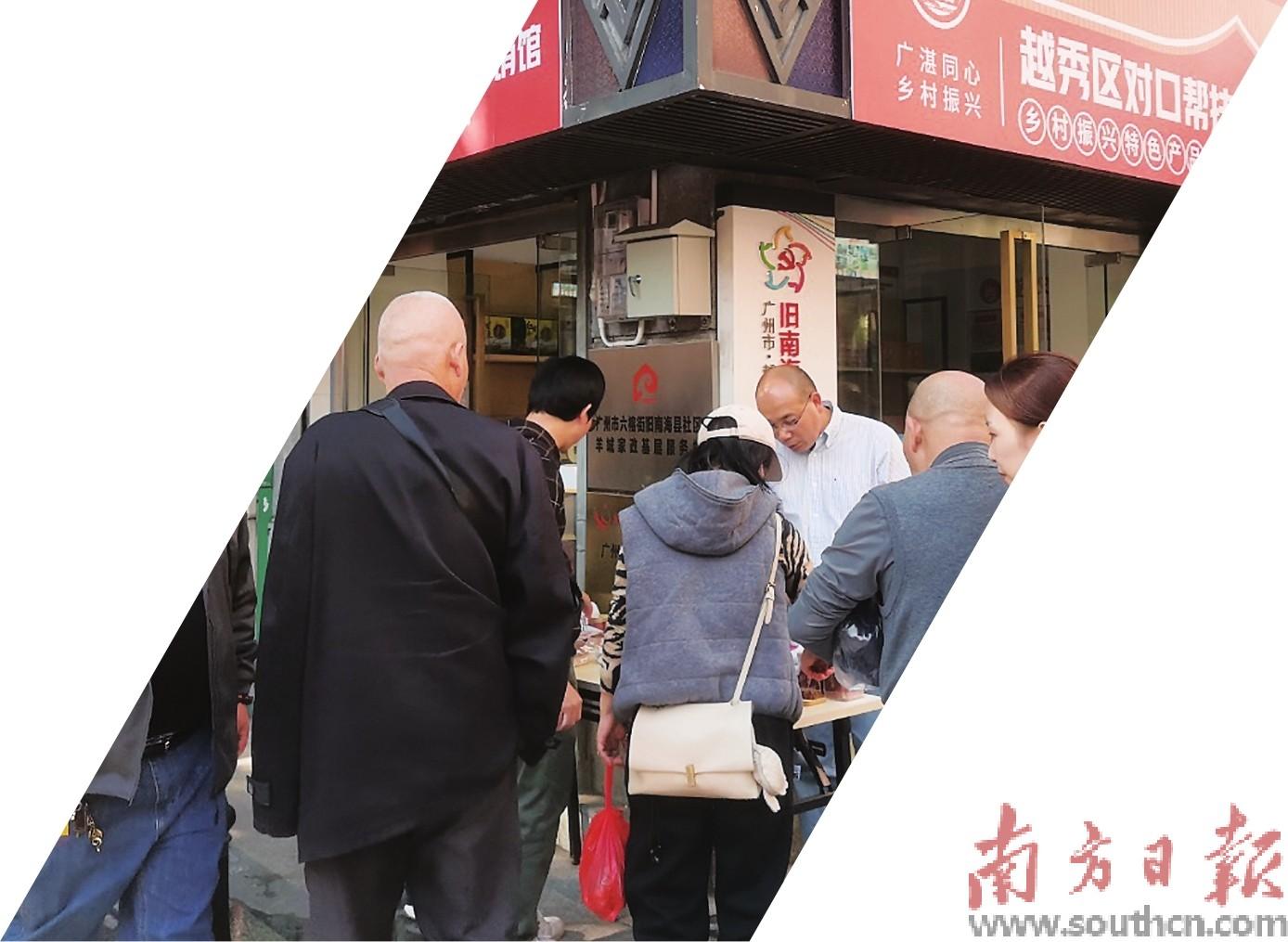 2023年12月26日,越秀区六榕街,遂溪县特色产品进社区展销馆前,广州街坊被吸引而来了解、购买。