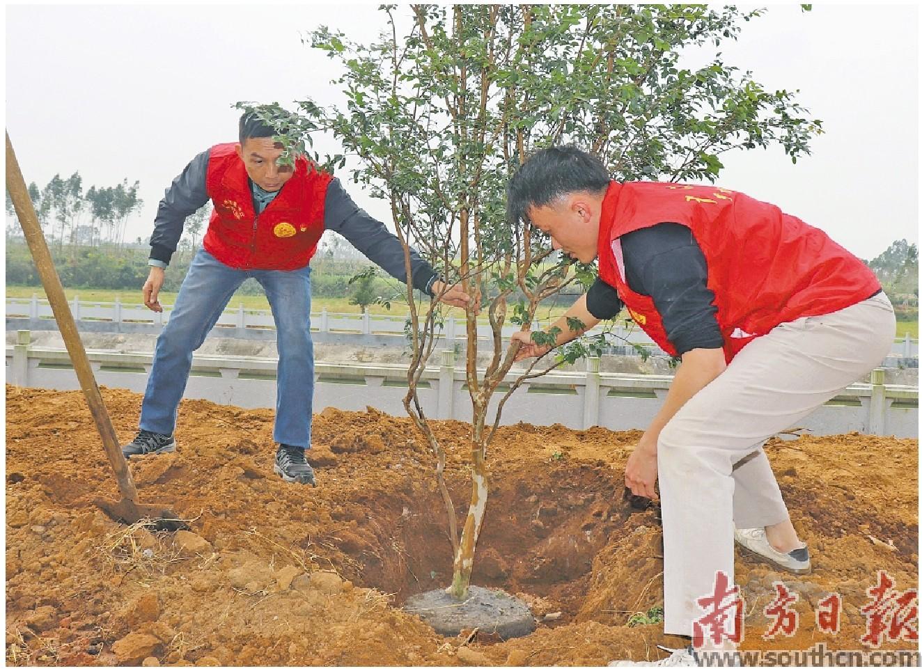 广州市驻湛江市遂溪县建新镇工作队参与“有喜事来种树”活动。遂宣供图