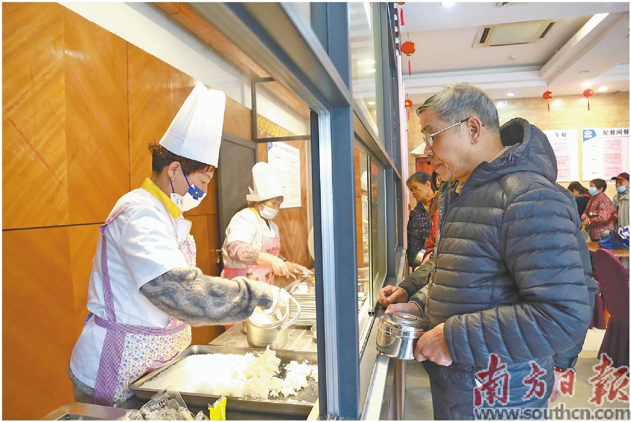 寸金长者饭堂内,工作人员正在为长者打饭。林露 摄