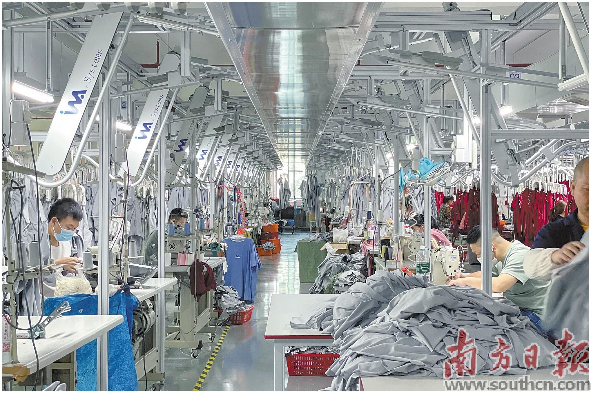 汕头纺织服装企业内,工作人员正在生产线上忙碌。余丹 摄