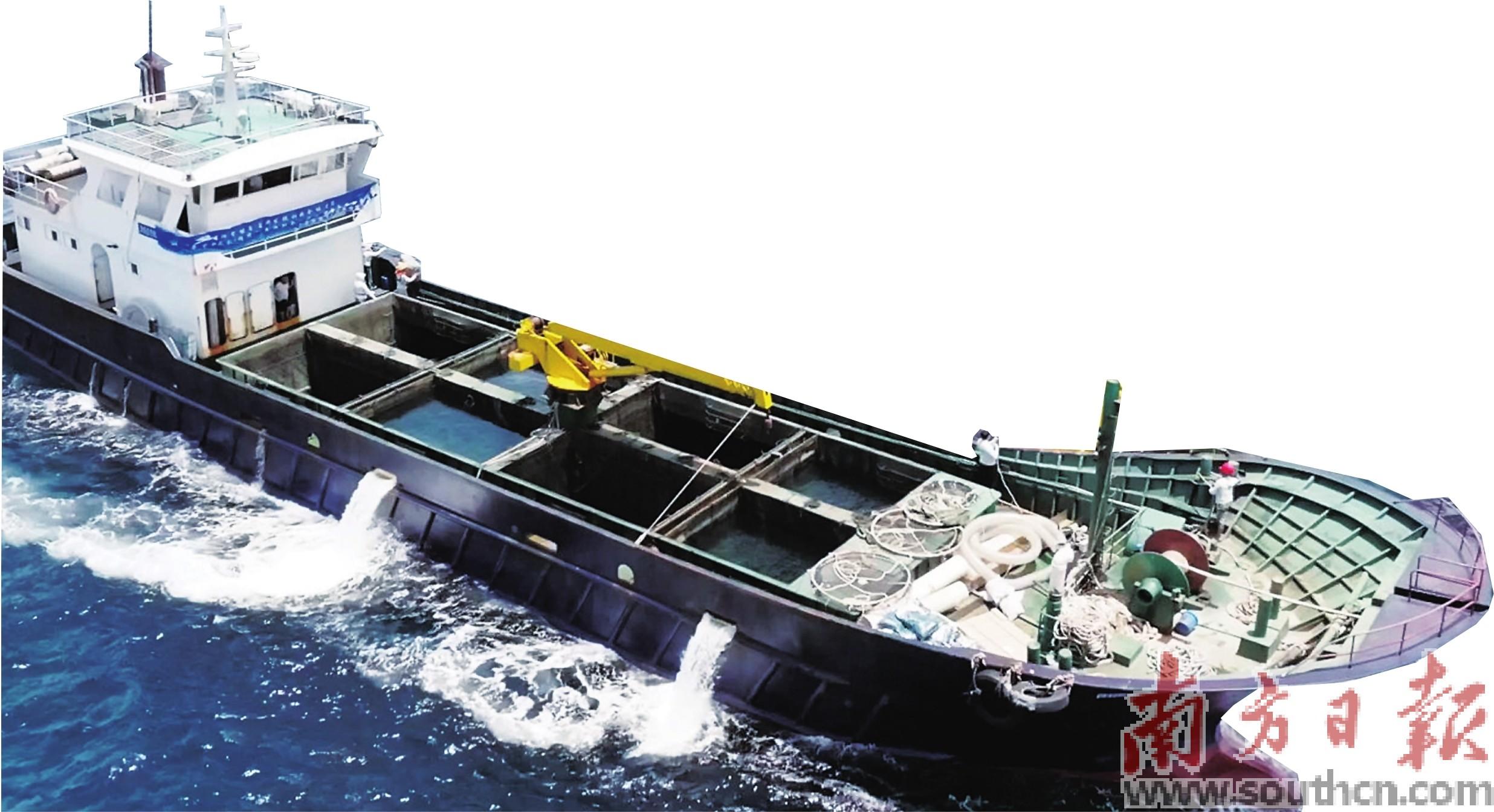 全球首台“导管架风机+网箱”风渔融合养殖平台“明渔一号”实现丰收。受访者供图