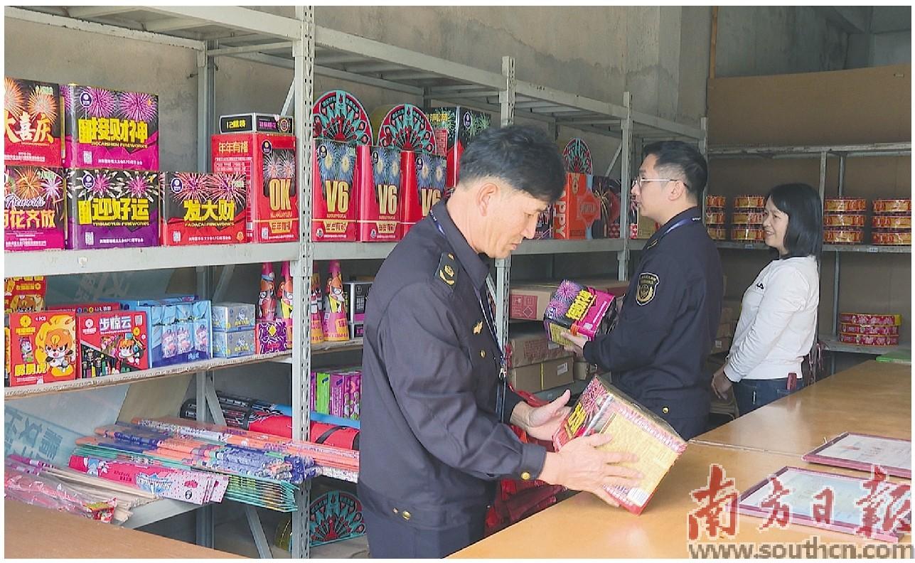 工作人员在烟花爆竹销售点开展执法检查。受访者供图