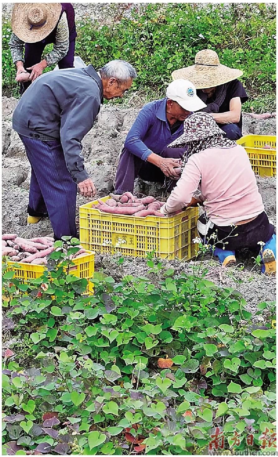 种植户在采收溪头五彩薯。