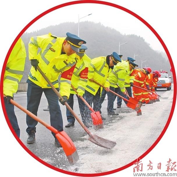 为迎战春运“大考”,保障乐广北高速安全畅通,1月25日春运前一天,乐广北高速全面开展“破冰行动”,30名党员、团员及青年组成“南岭先锋抗冰抢险队”,人工铲除结冰路段超车道及应急车道残余薄冰(见图,受访者供图),沿途清理倒伏树枝,同时预防性撒布融雪剂,全力保障乐广北高速安全畅通。目前已清理桥面薄冰约9000平方米。