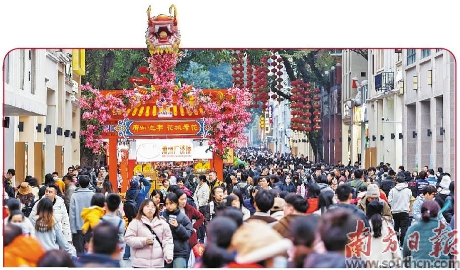 新春将至,广州年味渐浓。图为1月28日,周末的北京路人潮涌动,众多市民游客冒着严寒前来逛街购物。南方日报记者 张冠军 摄
