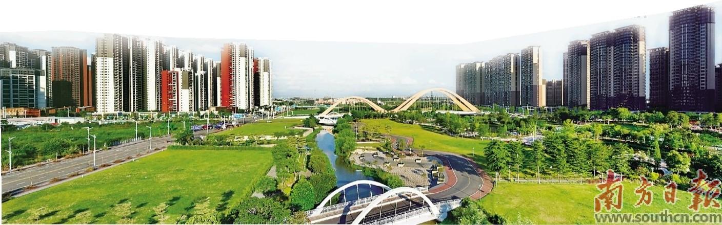 三水将实施城市品质提升三年行动“十大工程”。图为新城水轴贯通工程节点。三水区委宣传部供图