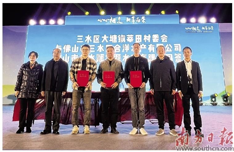 莘田村与佛山市三水合洋水产有限公司、佛山市三水顺华源水产有限公司签约。李周秦 摄