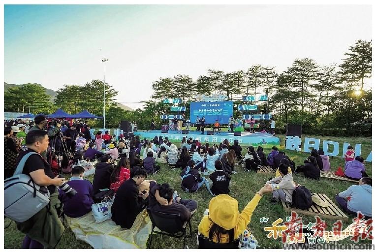 南山镇依托生态禀赋打造“湾区香格里拉”吸引游客。图为该镇举办的稻田音乐节现场。