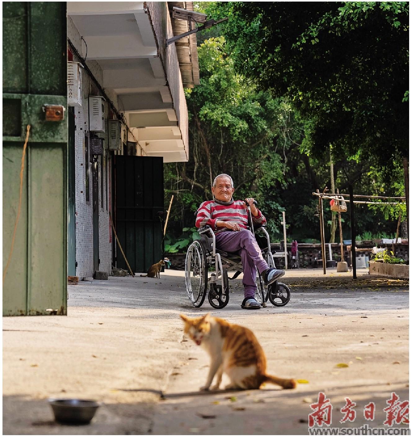 玲珑医院百岁老人在家门口晒太阳。南方日报记者 许舒智 摄