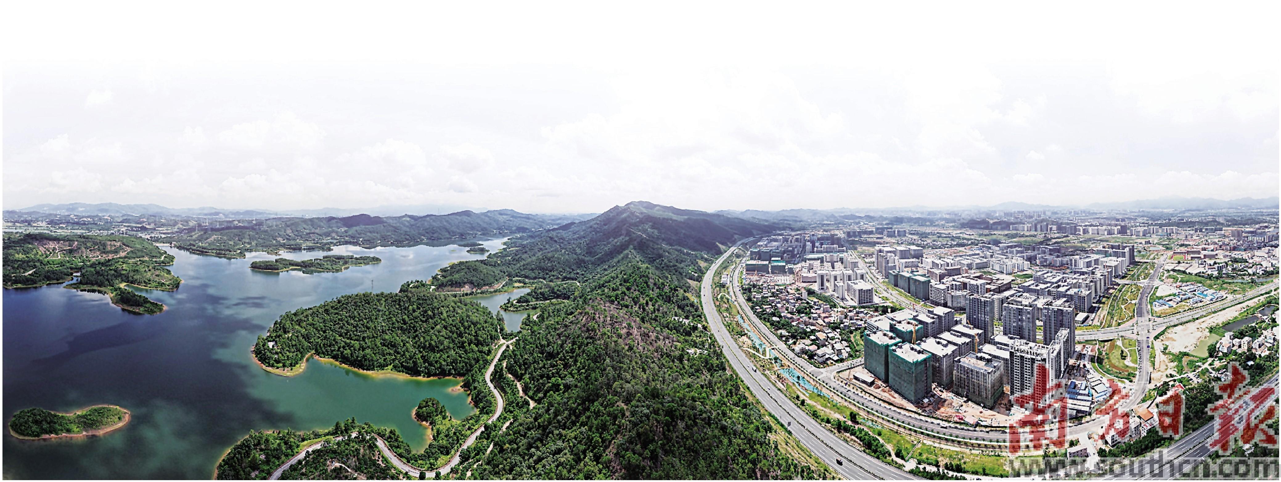 仲恺高新区迈入“千亿俱乐部”。图为观洞水库与中韩(惠州)产业园起步区交相辉映。