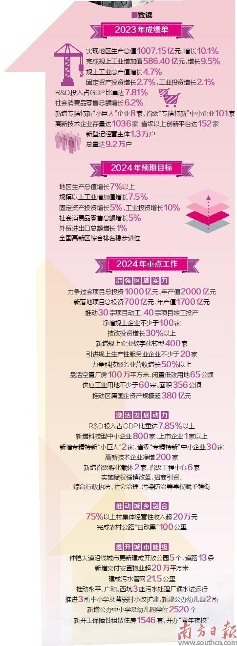 会议提出,站在“千亿高新区”新起点,今年,仲恺高新区将锚定“地区生产总值增长7%以上”的预期目标,统筹扩大内需和深化供给侧结构性改革,统筹新型城镇化和乡村全面振兴,统筹高质量发展和高水平安全,持续推动经济实现质的有效提升和量的合理增长,鼓足干劲、奋勇向前,以实干实绩再创全面建设国家一流高新区新局。