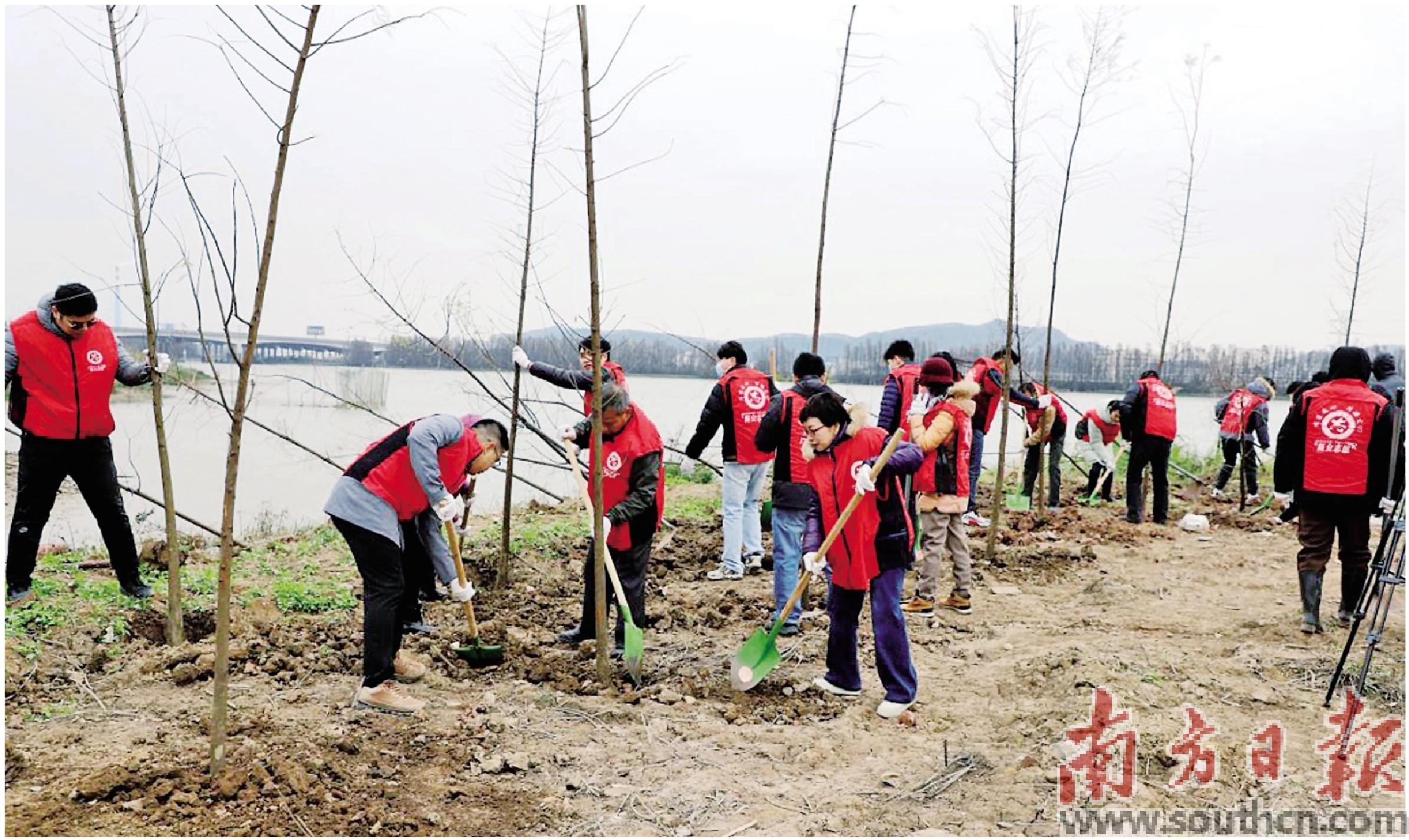 1月25日,新会区在会城街道茶坑村银洲尾水闸旁开展“我为侨乡种棵树”植树活动。新会区委组织部供图