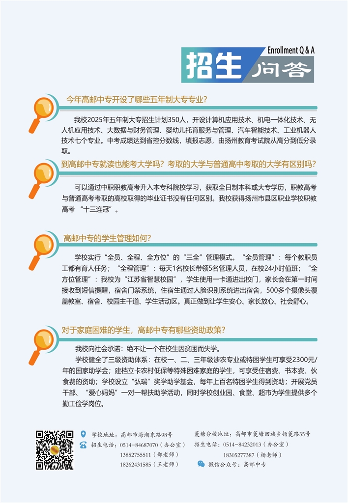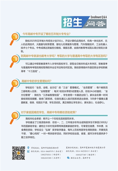 2025年高邮中专招生工作大幕已开启,今年该校的招生计划您了解吗?您是否对职校还有一些不了解?您是否担心您的孩子会自由散漫?您是否还在为孩子的学费而忧心?在这里,我们都会一一为您解答。