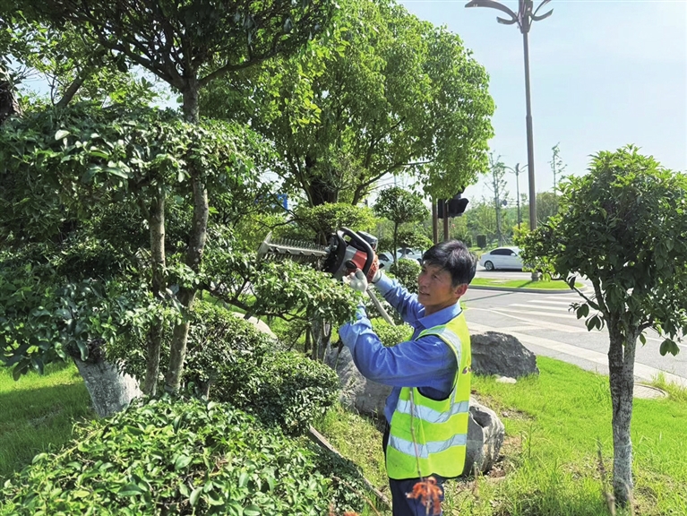 上午十点半,日头愈发毒辣,晏凤桃结束了一天的工作。收拾工具前,他又仔细检查了修剪过的绿植,以确保造型完美。尽管这份工作满是辛劳,但望着经自己双手打理得整齐美观的绿化带,晏凤桃脸上露出了满意的笑容。他说,只要身体允许,就会一直干下去,为这座城市的美丽事业尽一份力。