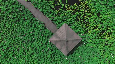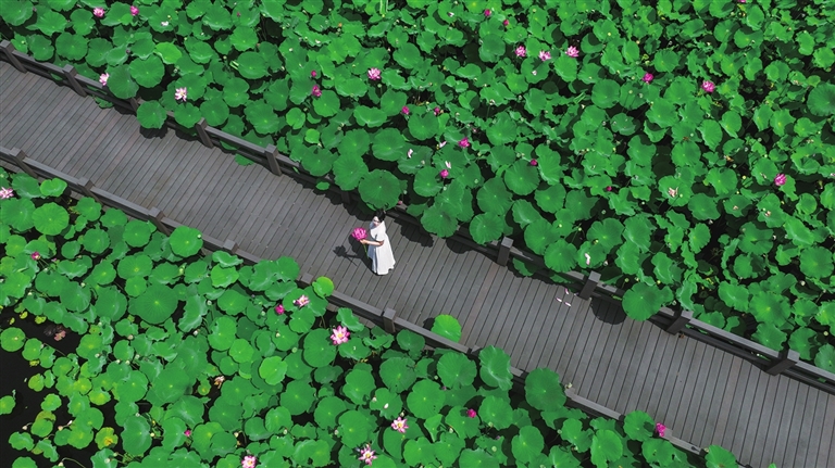 穿梭在荷花池畔,荷香萦绕,清新淡雅,驱散了暑气与疲惫。