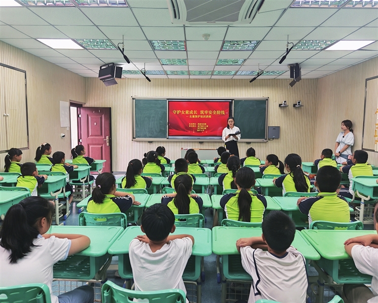 近日,市妇联携手卸甲镇关工委、卸甲镇妇联,在卸甲小学暑期校外辅导班举办“守护女童成长 筑牢安全防线”——女童保护知识讲座。讲师用通俗易懂的语言和生动形象的案例,深入浅出地讲解了如何保护身体、爱护身体、分辨和防范性侵害等知识,增强她们辨别风险和自我保护能力。