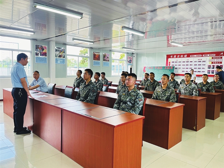 活动中,市司法局向长期以来为维护地方安全稳定、保障群众安居乐业作出贡献的官兵们表示感谢,并现场赠送慰问品。随后,专职律师结合军营实际与官兵需求,围绕军人婚姻家庭、退役安置、涉军纠纷处理等与官兵权益密切相关的法律知识进行专题讲解,进一步增强了官兵们运用法律武器维护自身合法权益的意识与能力。图为活动现场。