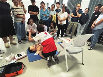 近日,市红十字会组织了公共场所AED+CPR专项培训,以确保全市公共场所投放的AED在紧急时刻能真正发挥作用。培训中,红十字救护培训师结合真实案例,着重强调心脏骤停后“黄金四分钟”内实施高质量CPR和AED除颤的重要性。在实操考核环节,通过模拟真实突发场景,学员们进行双人心肺复苏结合AED使用的演练,实现了取用设备与CPR的无缝衔接施救。图为培训现场。