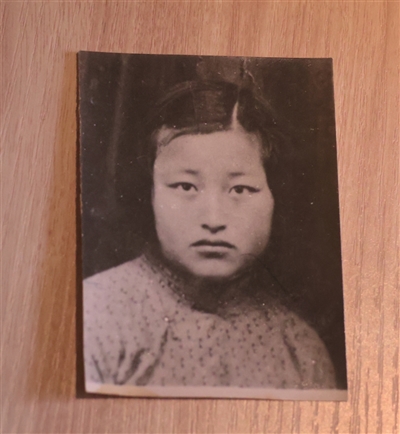 胡继芳家里留着一张小姑离家前的照片,里头的女孩穿着旧式旗袍侧着身,刘海用发夹别着,表情严肃。