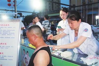 8日晚,由市卫健委策划 组织的“健康夜市”在幸福里广场开启。活动以“健康夜市 ‘邮’你更好”为主题,将专业、便捷、高效的健康服务融入城市夜经济和市民休闲生活。现场设置了健康服务体验区和健康文艺表演区两大板块,吸引了逾千名市民热情参与。市民们不仅可以在这里体验中医服务、专科义诊等,还可以通过观看健康文艺节目、参与互动问答等方式学习健康知识,感受健康生活的乐趣。