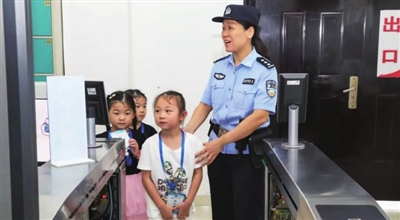 在法警的引导下,萌娃们排着整齐的队伍,好奇地通过安检门,秩序井然地完成了进入法庭区域的第一步。