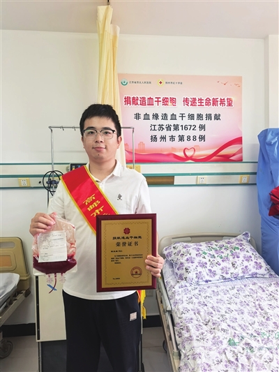 本报讯(通讯员 陈亚楠 记者 东方)20日,经过近4个小时采集,黄亚辉在苏北人民医院成功捐献191毫升造血干细胞混悬液,为一位素未谋面的血液病患者带去了生命的希望。据了解,黄亚辉是我市首位“95后”造血干细胞捐献者,也是高邮市第 11位、扬州市第88例造血干细胞捐献者。