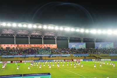 市文体公园体育场内,灯光如炬,亮如白昼。