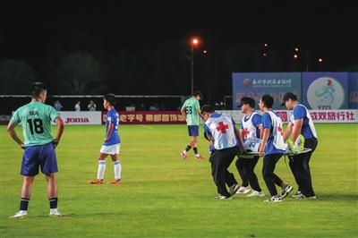胜利是目标,但绝不是衡量体育精神的唯一标尺。上半场,12号球员周一峰腿部受伤,疼痛难忍,却在喷完冷喷后毅然重返战场。直至下半场再次受伤,他才因剧痛不得不离场。“我们会认真复盘,把失败的原因一条条理清楚,接下来重点加强定位球战术和体能训练。我们绝不会气馁,后面的比赛,继续冲!”赛后面对记者,他的眼中没有沮丧,只有坚定。