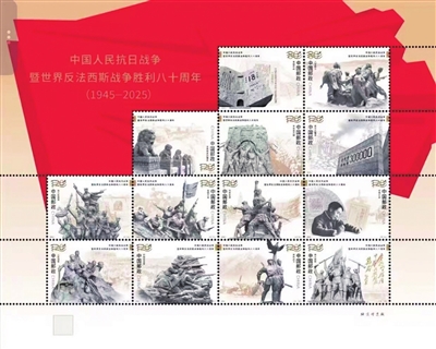 本报讯 (通讯员 任仁 记者 东方) 根据党中央有关中国人民抗日战争暨世界反法西斯战争胜利80周年纪念活动安排,中国邮政定于9月3日发行《中国人民抗日战争暨世界反法西斯战争胜利八十周年》纪念邮票1套13枚、小型张1枚(2025—18J)。其中2025—18(13—13)J邮票的名称为“伟大胜利”,票面选用的雕塑是高邮胜利广场中的“胜利时刻”,这是高邮元素第5次登上“国家名片”。