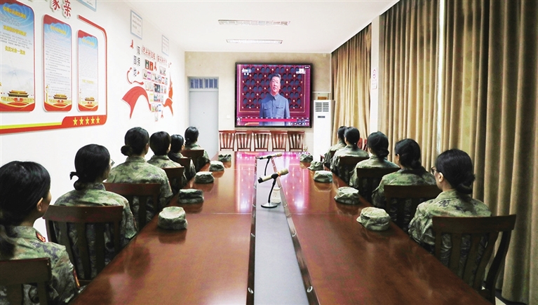 “女兵出场的那一刻,又飒又燃。”菱塘回族乡水上救护女子民兵班的队员们身着迷彩服,整齐端坐收看直播时激动万分,她们也高喊着“正义必胜、和平必胜、人民必胜”。女子民兵班班长杨倩激动地说,新锐装备集中亮相,展现了大国威仪,祝愿我们伟大的祖国永远繁荣昌盛 。
