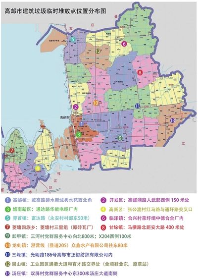 为加强我市建筑垃圾管理,规范建筑垃圾处置行为,有效防范环境污染,根据《高邮市建筑垃圾污染环境防治规划(2024-2035)》和《高邮市建筑垃圾全链条治理工作方案》等相关要求,建成13个乡镇(园区)建筑垃圾临时堆放点,现将相关信息公示如下:
