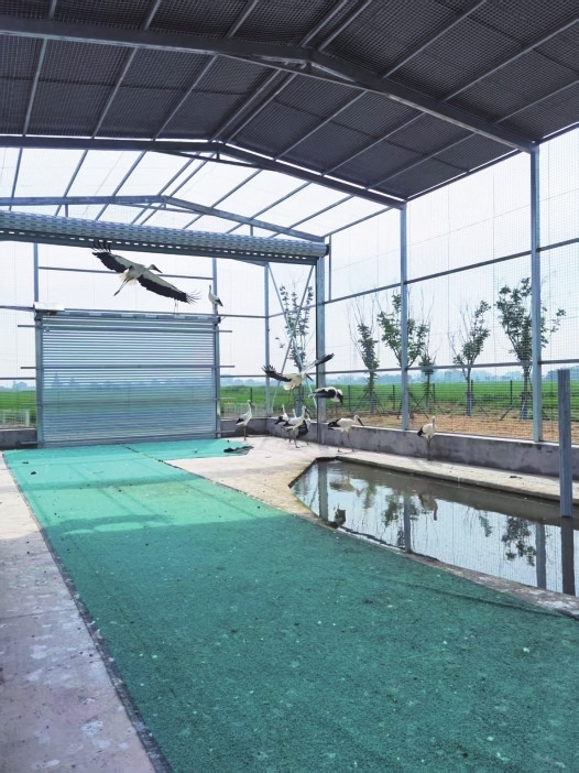 据悉,该康复区长21米、宽9米、高6米,整体设计秉持“模拟自然生态”的核心理念,为受伤的东方白鹳打造一个既宽敞安全、又功能完备的疗愈空间。今年以来,首批12只被治愈的东方白鹳,已从救治区妥善转运至新建的康复区,它们将在此接受野外适应性训练,为再次重返蓝天做好充分准备。