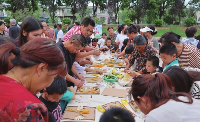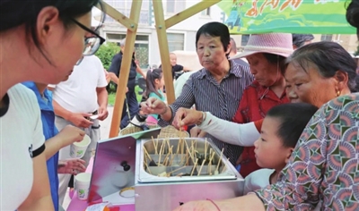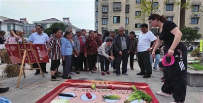 “五谷丰登画”手工区,孩子们的参与度热情高涨,他们在秋日的龙虬里寻找作画素材,用小手和创意拼接出他们记忆中的丰收图景;“南瓜保龄球”游戏区,群众沉浸式体验运动的快乐;“豆王争霸赛”赛区,阿姨们手速飞快,熟练地卡住豆荚缝隙,一颗颗豆子不断跳入盆内,大家在无声中展开速度较量;“蔬菜圈圈乐”游戏区,大人孩子踊跃参与,传统农耕乐趣洋溢现场。现场还结合文明实践、乡风文明等重点工作进行“反话正说”游戏互动,欢声笑语不断。