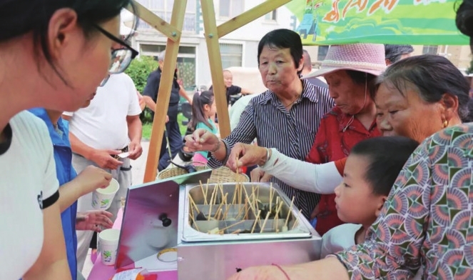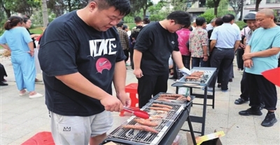 烧烤区更是热闹非凡,参与游戏的群众可以凭现场互动获得的抽奖券进行抽奖兑换,现烤的高邮大虾、滚烫的农家红薯,丰收的气息扑面而来。