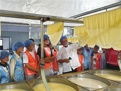 近日,高新区送驾桥村党群服务中心组织了“豆皮‘挑’出非遗味道,童心点亮传统文化”主题体验活动,数十名青少年在欢声笑语中与非遗技艺来了一场“亲密接触”。活动中,非遗传承人谭太清师傅向孩子们讲述了豆皮这一地方特色美食的历史渊源、文化内涵以及“挑豆皮”这一技艺的传承故事。在实操环节中,孩子们围站在操作台前,在谭太清的手把手指导下尝试“挑豆皮”。图为活动现场。