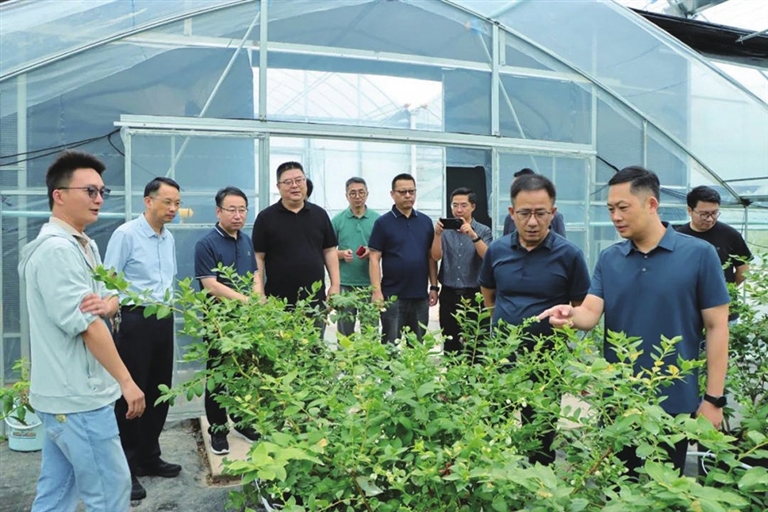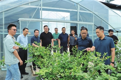 在卸甲镇,金健峰一行先后实地考察盛蓝蓝莓、飞扬实践基地和北京花木公司,详细了解卸甲现代高效特色农业发展成果,并听取了农业园区的发展概况。金健峰对卸甲结合本土实际,深化与高校科研院所合作,推动科技创新成果转化,聚力发展现代高效特色农业,助推乡村振兴所取得的成绩给予肯定,并表示经验做法可借鉴。