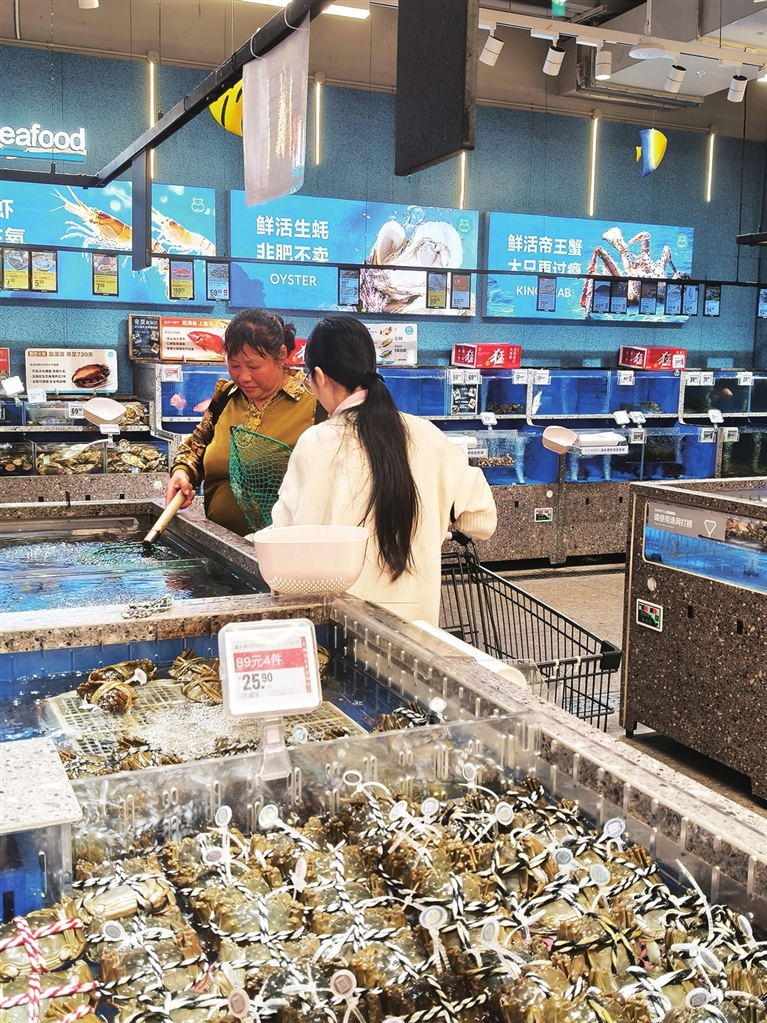 国庆、中秋“双节”临近,我市各大市场、商超商品供应充足,鲜活肥美的高邮大虾、螃蟹备受青睐,各式各样的月饼琳琅满目,一派红火热闹的景象。 韩静芸 摄