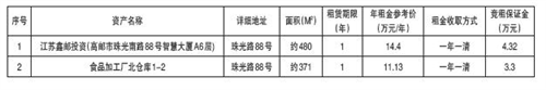 有意者请在2025年9月30日10时00分至2025年10月20日16时30分,在扬州市公共资源交易中心高邮分中心网站(http://ggzyjyzx.yangzhou.gov.cn/gyfzx/)交易响应方登入注册报名,缴纳保证金。(挂牌报名期满,如未征集到意向承租方,按 5个工作日为周期延迟,最多延迟 2个周期,竞价时间同期顺延)。
