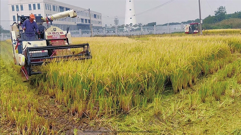 金秋十月,稻香四溢。眼下,全市82.35万亩水稻丰收在望,田间处处是“丰”景。11日下午,菱塘回族乡清真村集体农场的110亩水稻开始收割,收割机在田间来回穿梭,将丰收的稻谷收入囊中。图为收割现场。