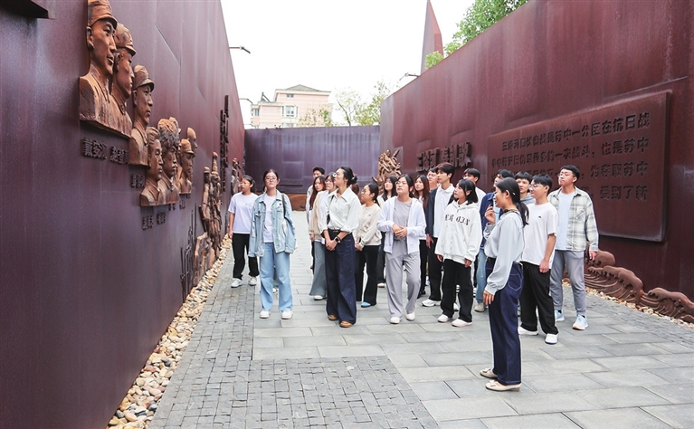 近日,由市委宣传部、扬州工业职业技术学院主办,市农文旅集团、扬州市大中小学思政课一体化建设联盟承办的“追寻抗战足迹 凝聚奋进力量”大思政课活动走进高邮。活动为“大思政课”实践教学基地——侵华日军向新四军投降处旧址揭牌。活动中,扬州工业职业技术学院学生们参观了侵华日军向新四军投降处旧址,思政课教师在抗战甬道现场教学,扬州文史专家在胜利广场讲述高邮战役,激励学生们铭记历史、砥砺前行,为实现中华民族伟大复兴贡献青春力量。图为活动现场。