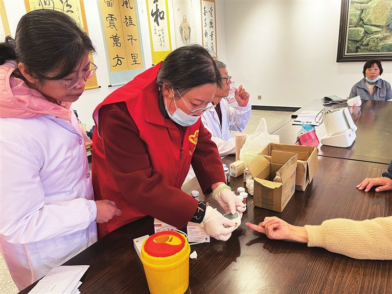 21日一早,市人民医院杏林志愿者便齐聚镇国寺,为市民开展义诊服务。据了解,自去年起,市人民医院每月农历初一上午8时,都会准时前往镇国寺开展义诊,不少市民也如约前来。当天的义诊持续两小时,现场温馨且秩序井然。图为义诊现场。