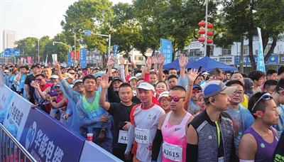 清晨7时20分,净土寺塔广场被天南地北的热情提前唤醒。3500名参赛选手身着五彩战服,或舒展身体拉伸热身,或举着手机合影留念,音乐声、欢笑声、交流声交织成热闹的赛前序曲,每个人眼中都是对鸣枪时刻的期待。
