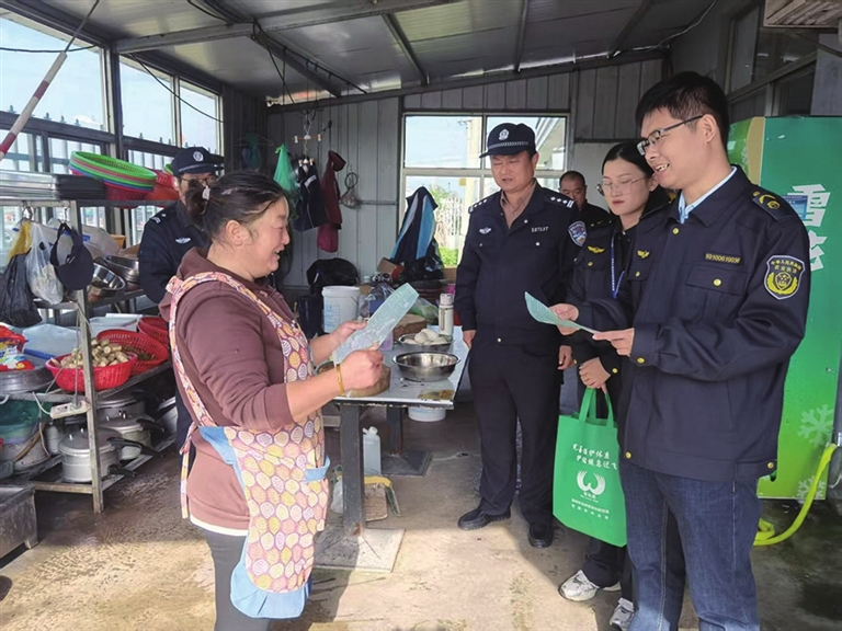 近日,市资规局联合公安、市监、农业农村等部门,开展保护鸟类活动和打击非法捕猎贩卖鸟类专项行动。行动中,执法人员向群众和商户积极宣传保护鸟类对推进生态文明建设、维护生物安全的重要意义,并告知非法捕猎的法律后果,增强公众野生动物保护意识,引导全社会共同营造人与自然和谐共生的自然环境。图为宣传现场。