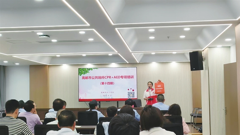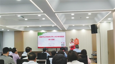 近日,市红十字会在市人力资源管理服务中心、市综治中心新增2台自动体外除颤器(AED)。这一“救命神器”能在突发心脏骤停时发挥关键作用,为办事群众和工作人员筑牢生命安全防线。投放前,市红十字会为相关场所工作人员开展多场专项培训,涵盖心肺复苏术、AED操作、海姆立克急救法等实用技能。图为培训现场。