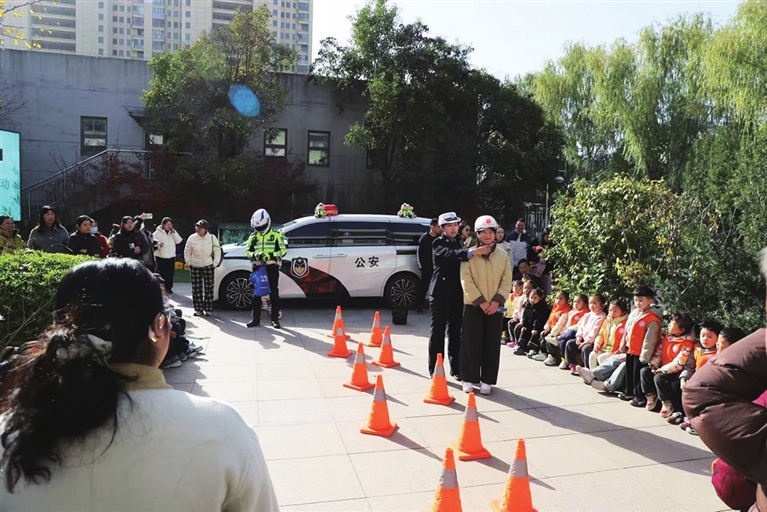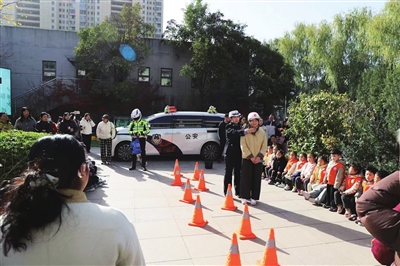 12月2日是全国交通安全日。11月28日,市公安局交管大队宣传小分队走进市实验小学东区附属幼儿园,开展主题交通安全宣传活动。活动中,宣讲员现场为家长、幼儿讲解佩戴安全头盔的重要性以及如何正确佩戴头盔,并开展模拟醉酒驾体验等活动,让学生及家长切实体会交通违法行为的严重危害。图为活动现场。