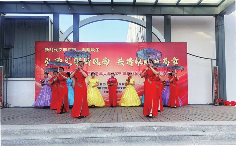 近日,城南新区老年大学在车逻新时代文明实践所举办了一场移风易俗惠民演出。现场,服饰表演、扬剧、经络操等节目丰富多彩,赢得观众阵阵掌声。穿插其中的“移风易俗知识有奖问答”环节尤为受欢迎,主持人围绕婚事新办、丧事简办、反对铺张浪费等主题提出问题,观众踊跃抢答,文明新风的理念在轻松愉快的氛围中悄然深入人心。 居佳佳 摄