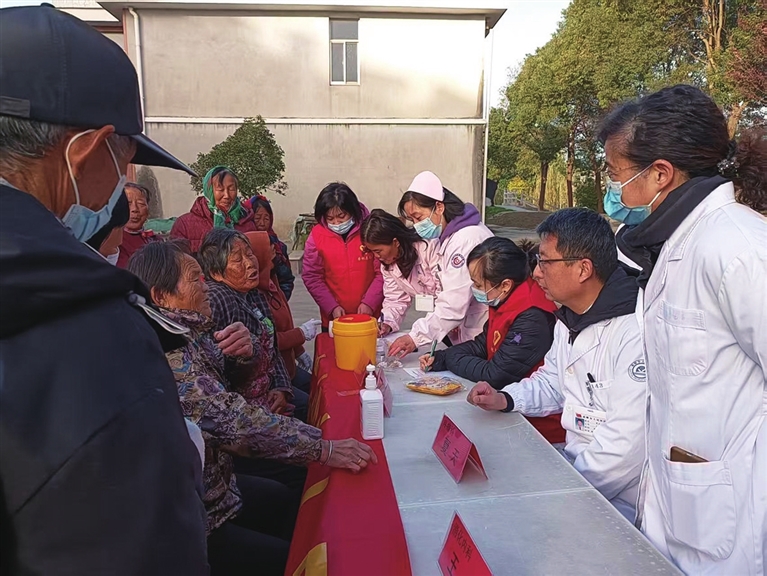 11月28日,正值龙虬镇热闹的赶集日。当日,市人民医院组织一支由内科、外科、妇科、疼痛科专家及护理骨干组成的巡回医疗队,开展了一场集“义诊、培训、查房、指导”于一体的全方位健康服务活动,让当地群众在家门口就能享受到县级医院的诊疗服务。图为活动场景。