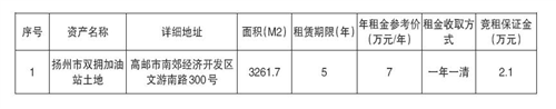 具体招租细节及要求请参见招租单位招租公告(公告发布网址:http://ggzyjyzx.yangzhou.gov.cn/gyfzx/ 产权交易)。