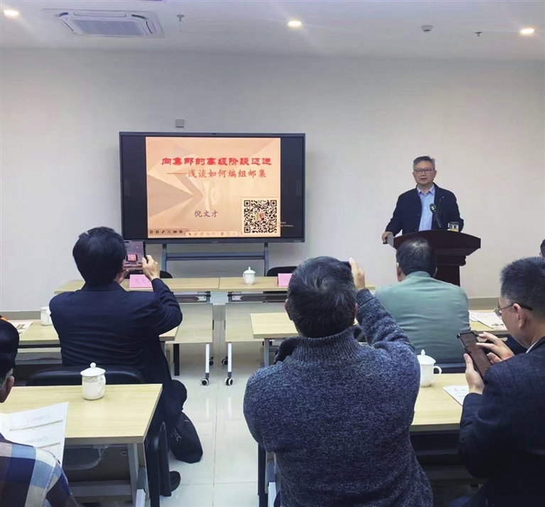 11月16日,中华全国集邮联会士、高邮市集邮协会顾问倪文才,应盐城大丰区集邮爱好者的邀请,在盐城大丰博物馆举办“向集邮的高级阶段迈进——浅谈如何编组邮集”的讲座。大丰区施耐庵研究会会长汤云庆主持讲座。 任仁